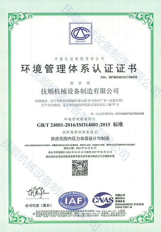環(huán)境管理體系認(rèn)證證書